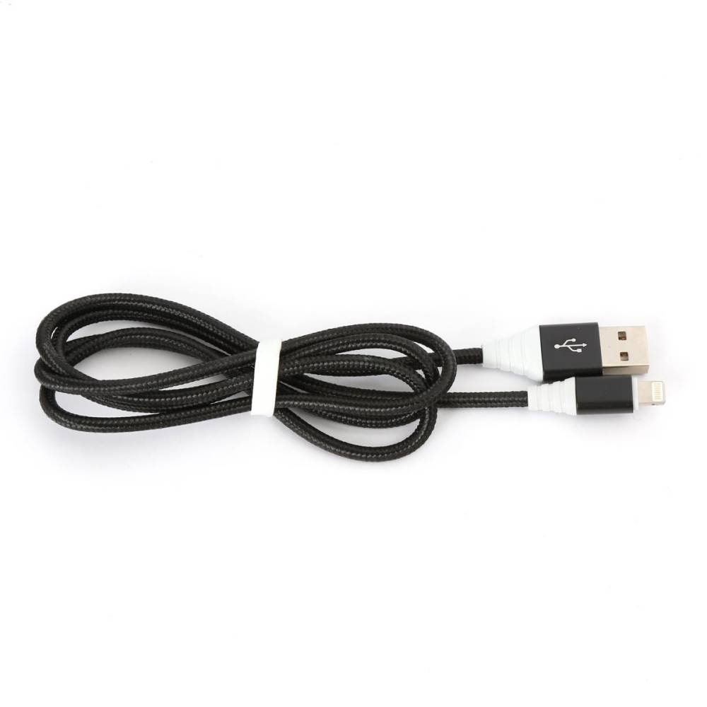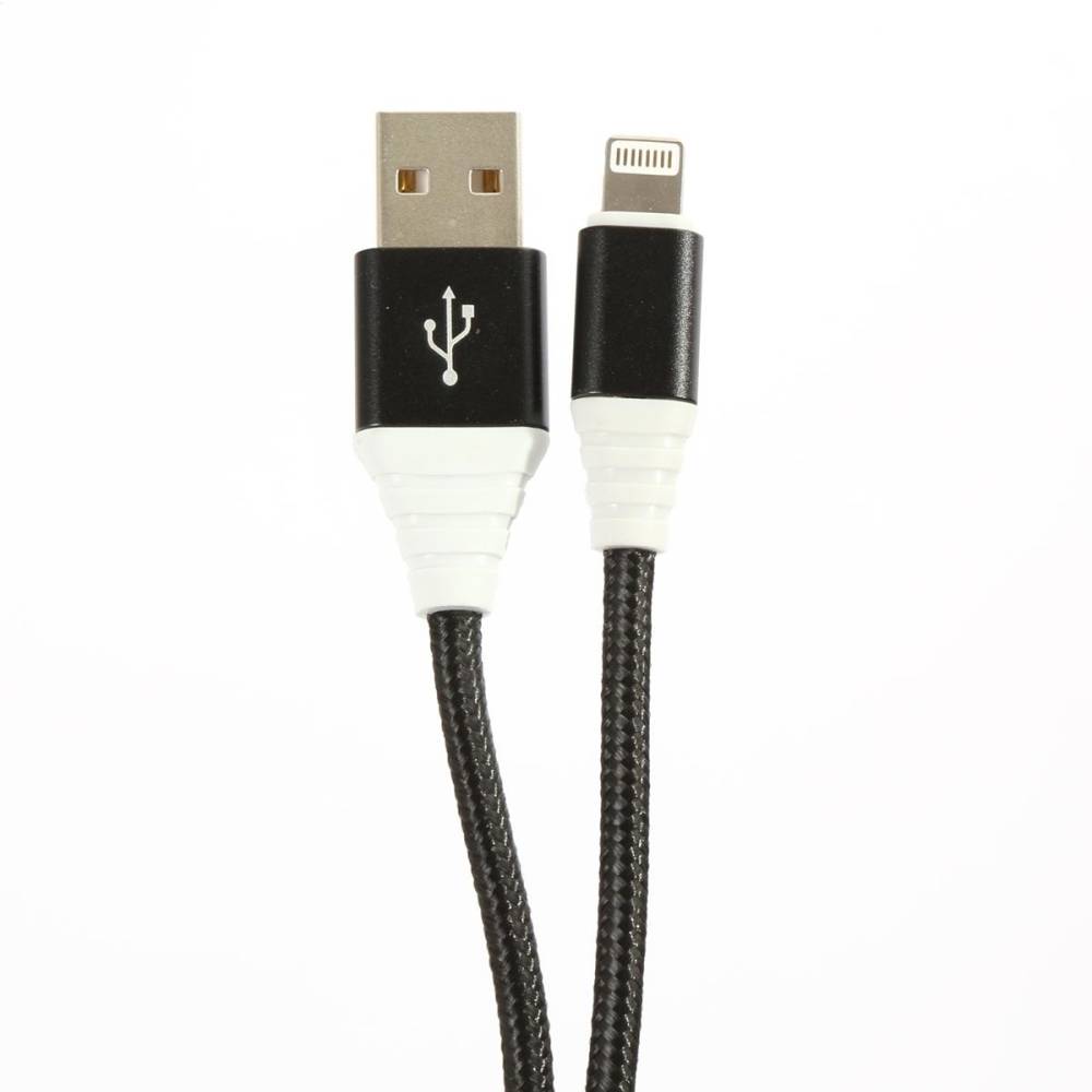 Universal, high quality, flexible and fabric braided USB cable with LIGHTNING endings for Apple products.