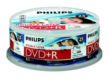PHILIPS DVD+R 8,5GB 8X DL WHITE INKJET PRINT. CAKE*25 DR8I8B25F/00
