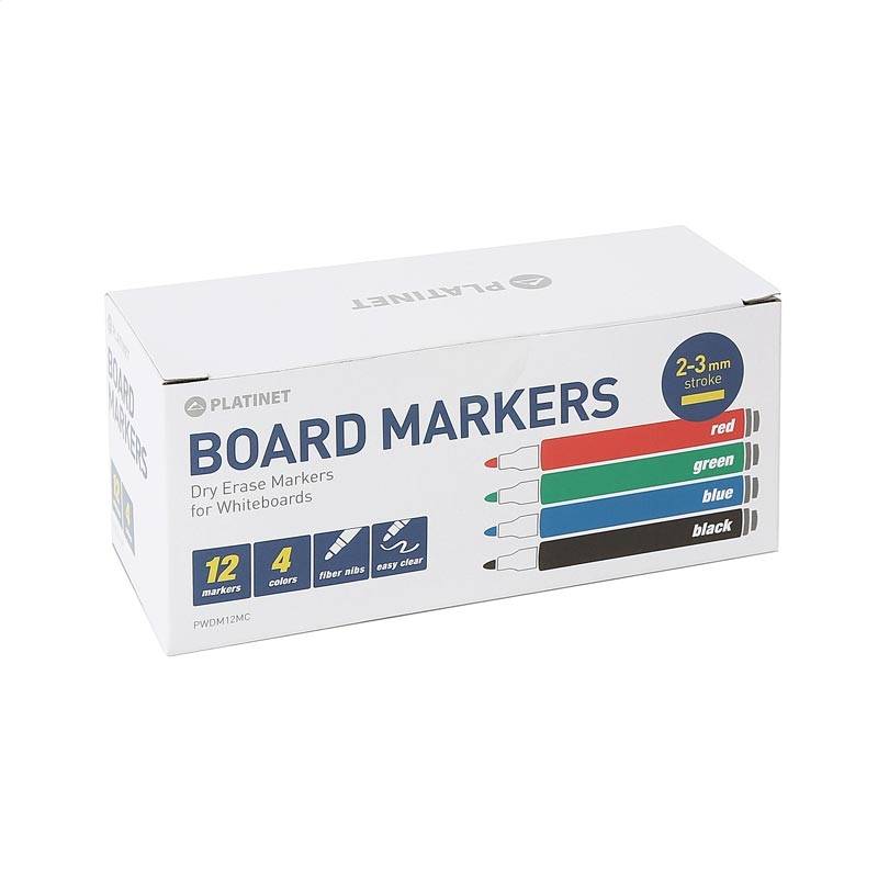 PLATINET DRY ERASE MARKERS BLACK / BLUE / RED / GREEN 12 PCS