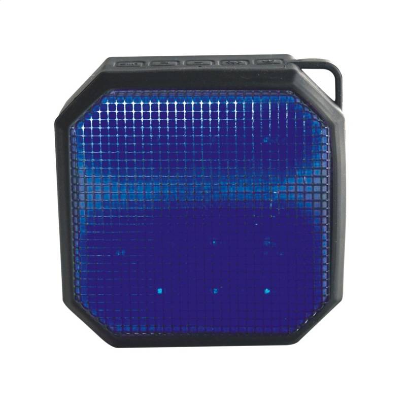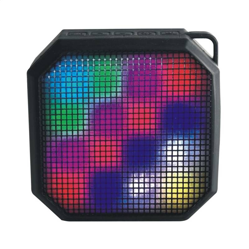 Kabelloser Außenlautsprecher mit dynamischer LED-Beleuchtung, Freisprechfunktion, gummibeschichtet, wasserdichtes IPX4-Design. Der Lautsprecher bietet einen sehr klaren Klang und ein gutes Bass-System. Dank des A2DP-Bluetooth-Profils können Sie kabellos Musik von jedem Bluetooth-fähigen Gerät (Smartphone, iPad, Notebook usw.) abspielen.