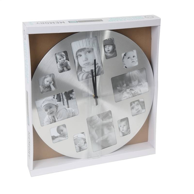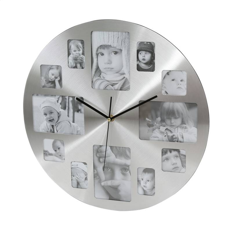 The clock also functions as a picture frame. In its housing, you can place up to 12 photographs of different sizes.