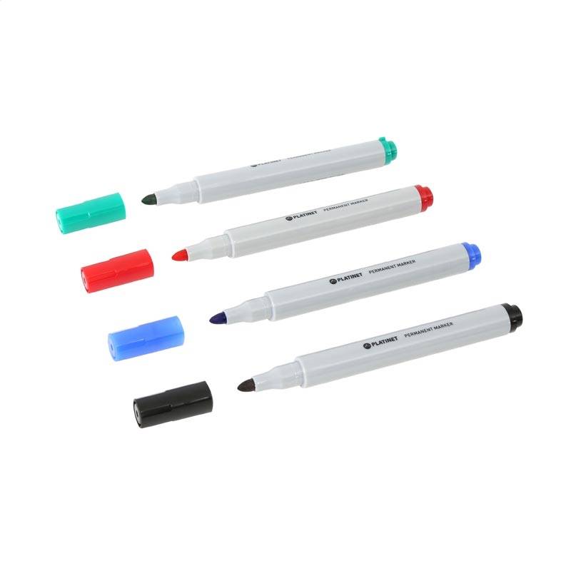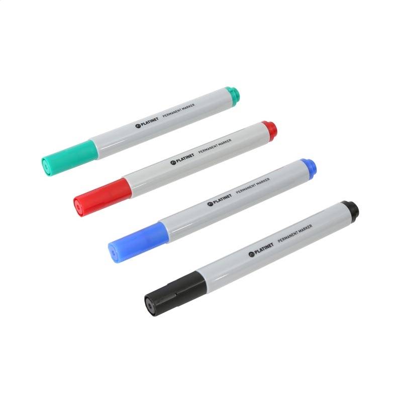 PLATINET PERMANENT MARKERS BLACK / BLUE / RED / GREEN 12 PCS