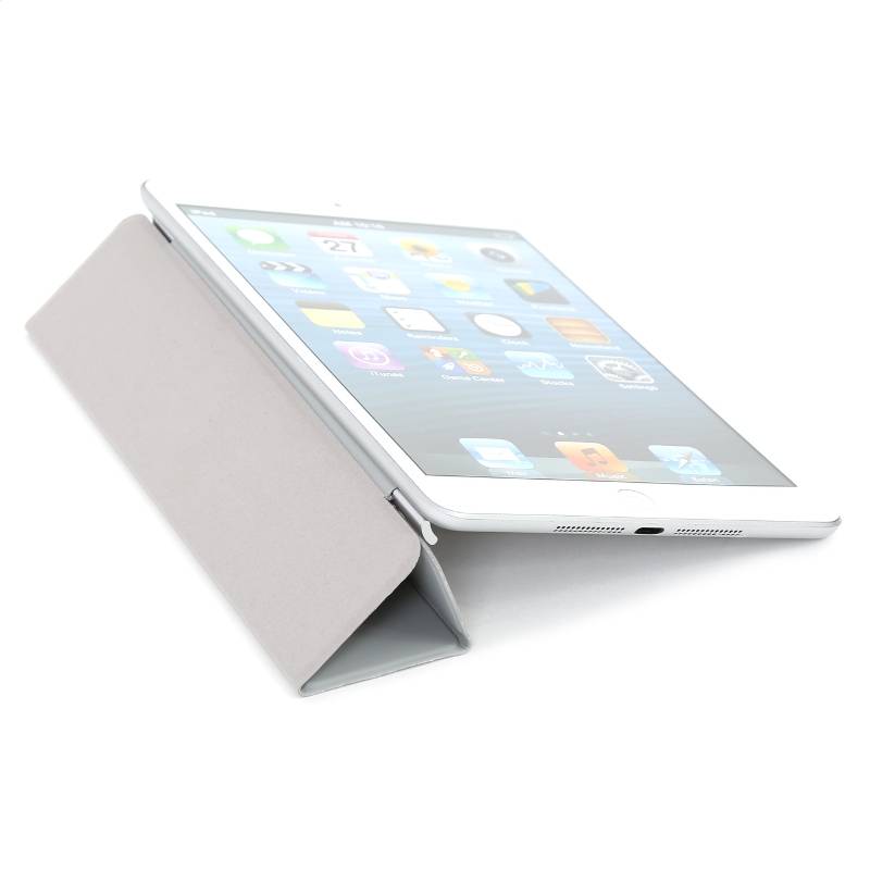 Overlay fits well to iPad Mini due to inside magnets. Opening overlay Smart Cover wakes up iPad Mini and closing goes to sleep. Smart Cover can be folded and turned into a stand for reading, watching and typing.