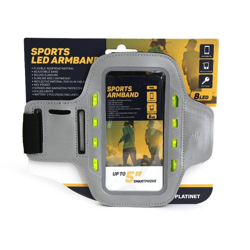 PLATINET SPORT ARMBAND FÜR SMARTPHONES GRAU MIT LED
