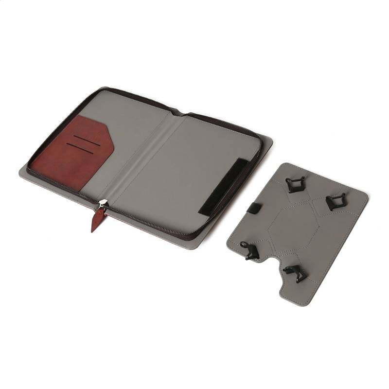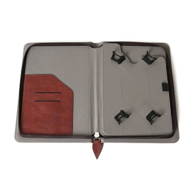 Exquisitely elegant tablet case, dedicated to devices from 7 " to 8" screen size, including the iPad mini. Made from the highest quality ECO leather case was equipped with a built-in organizer for credit cards, business cards or passes and a compartment for documents up to A5 size. The interior has an additional and fully detachable tablet holder, so that the case is gaining a new stand function. Tablet is also protected from case opening by strong zipper and business appearance was emphasised by the discreet and tasteful design with great finishes chosen.