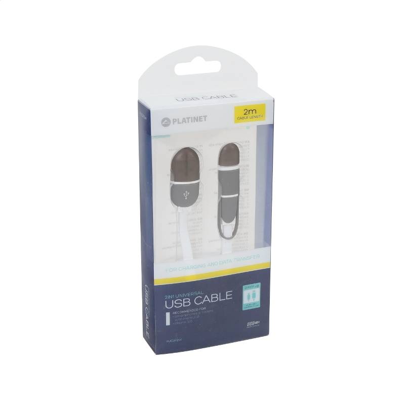 PLATINET USB UNIVERSAL CABLE 2 IN 1: MICRO USB & LIGHTNING PLUGS BLACK