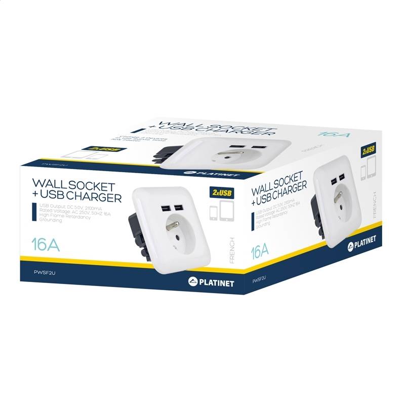 PLATINET WALL SOCKET FRENCH + 2 USB 2.1A