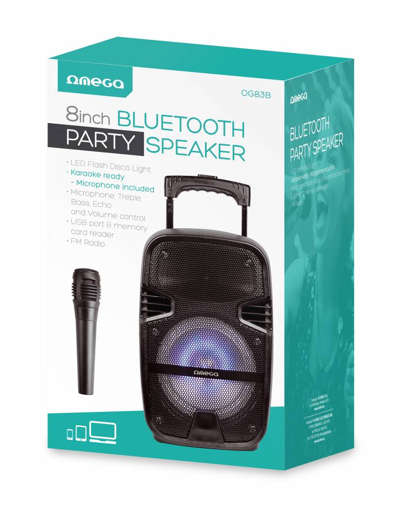 Omega OG83B is a powerful Bluetooth wireless speaker with karaoke function (microphone included) and LED backlight. This solution is ideally suited for weekend events.