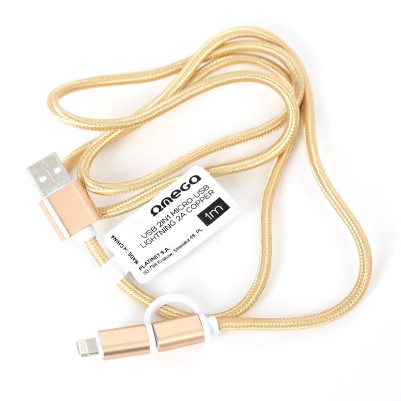OMEGA USB CABLE 2IN1 MICRO USB - LIGHTNING 2A COPPER BULK 1M BLACK [44317]