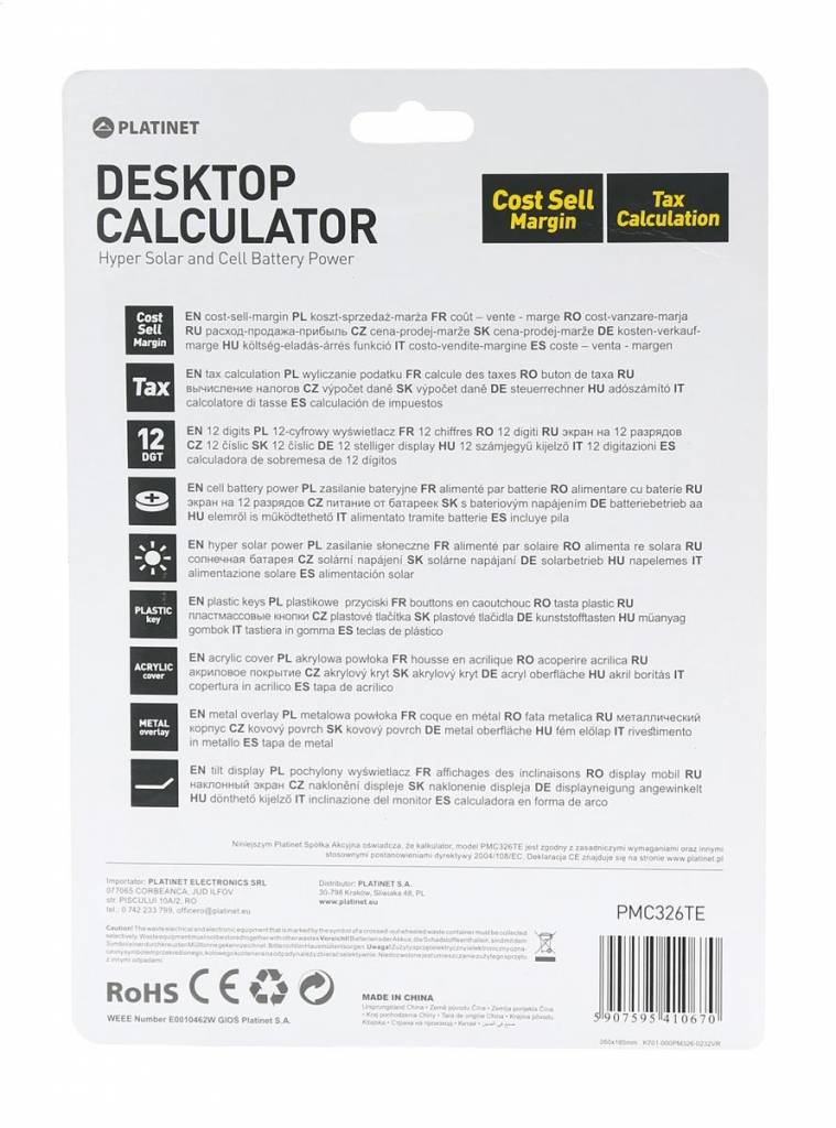 CALCULATRICE BUSINESS PLATINET PM326TE affichage 12 chiffres