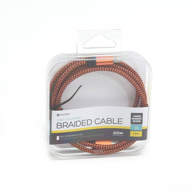 PLATINET USB LIGHTNING FABRIC BRAIDED CABLE 1M ORANGE