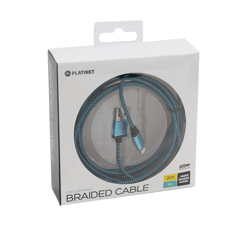 PLATINET USB LIGHTNING FABRIC BRAIDED CABLE 2M BLUE