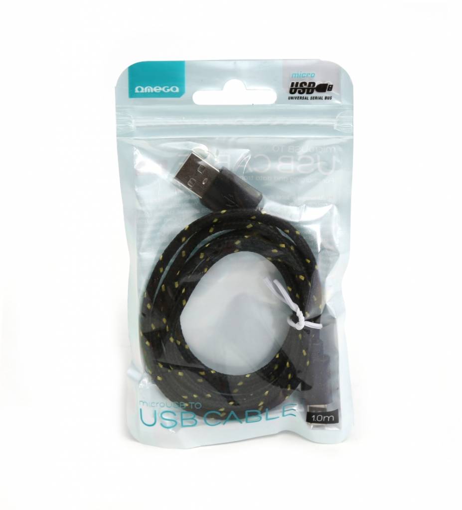 CABLE MICRO USB VERS USB OMEGA TISSU 1M NOIR & BLANC [42314]