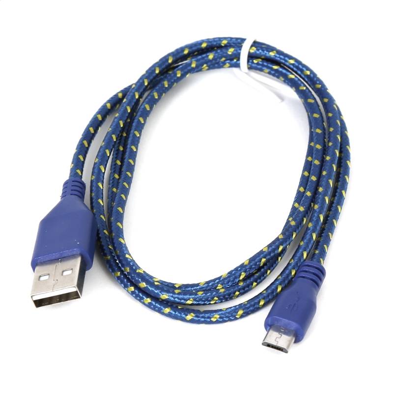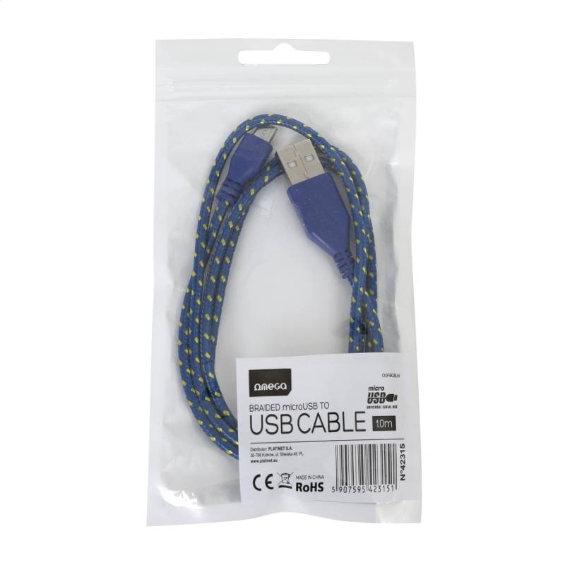 CABLE MICRO USB VERS USB OMEGA TISSU 1M - BLEU/JAUNE