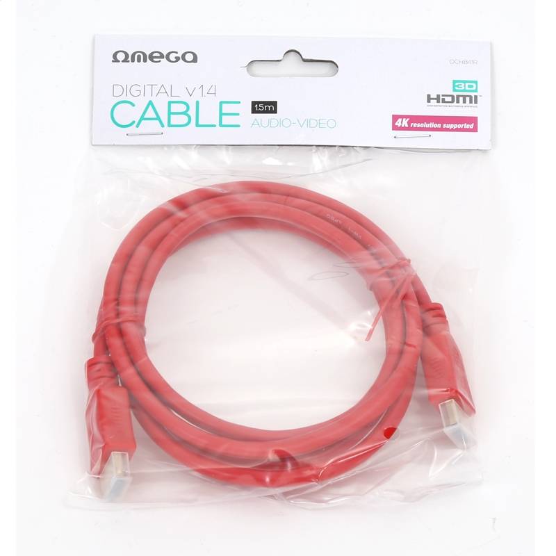 CABLE HDMI NUMERIQUE OMEGA V1.4 - LONGUEUR 1.5M - ROUGE - sachet