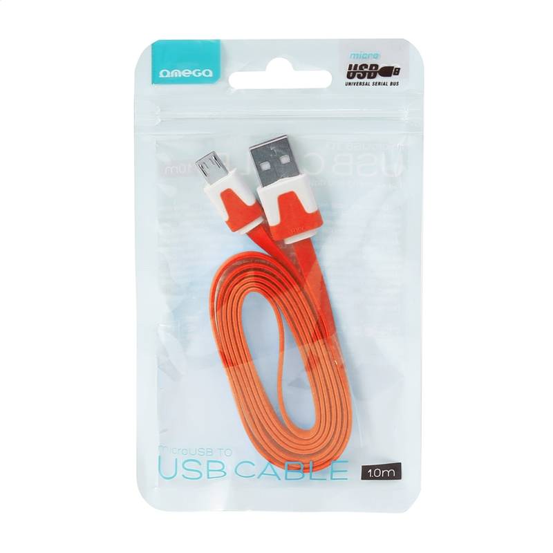 CABLE USB 2.0 PLAT OMEGA microUSB pour smartphones, tablettes 1M ROUGE [41860]