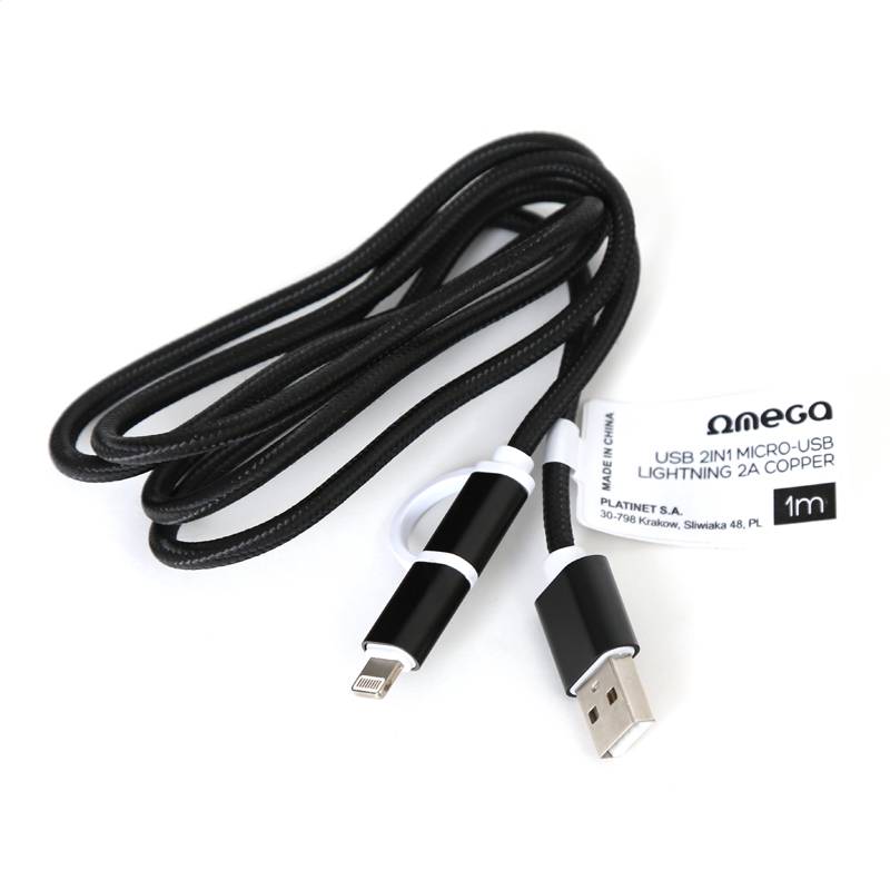 CABLE OMEGA USB 2en1 MICRO-USB LIGHTNING 2A COPPER BULK 1M Noir [44317]