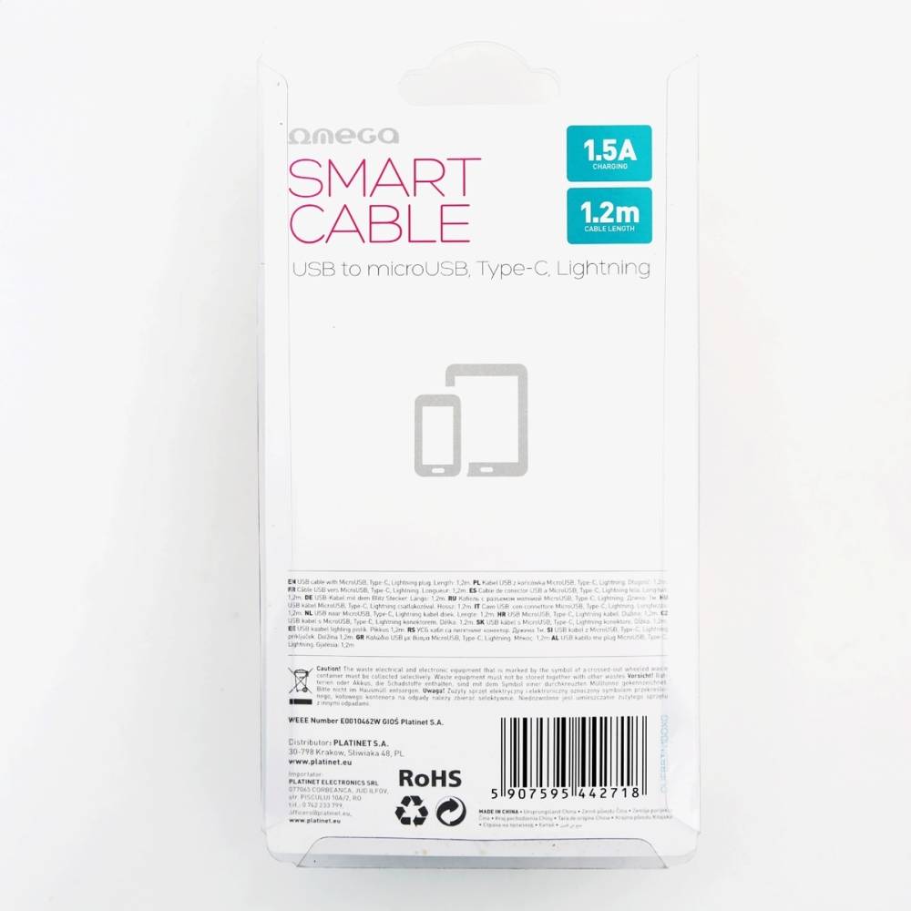 OMEGA CABLE USB 3 EN 1 MICRO USB TYPE C LIGHTNING 1.5A 1.2M OR 44271