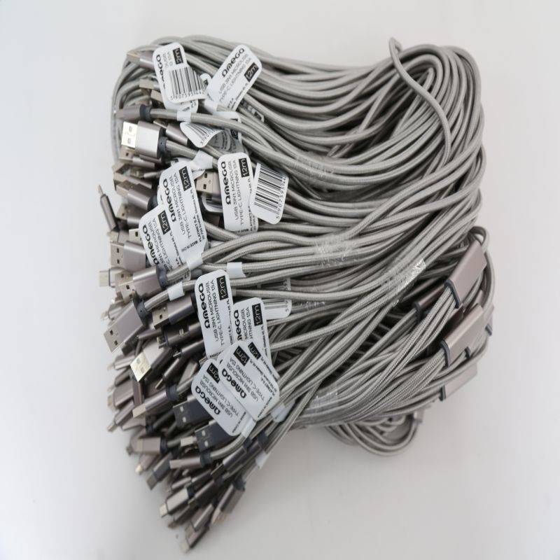 OMEGA CABLE USB 3 EN 1 MICRO USB TYE C LIGHTNING 1.5A POLY 1.2M GRIS 44221