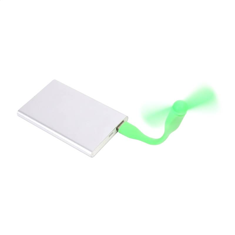 Mini ventilateur alimenté par port USB avec bras flexible ce qui permet un réglage de la direction du flux d'air.