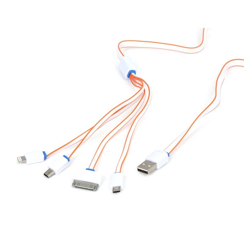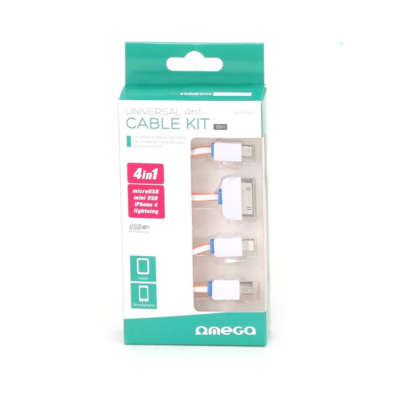 KIT DE RECHARGE 4 EN 1 OMEGA: MICRO USB + MINI USB + iPhone 4 + Lightning - BLANC/ORANGE