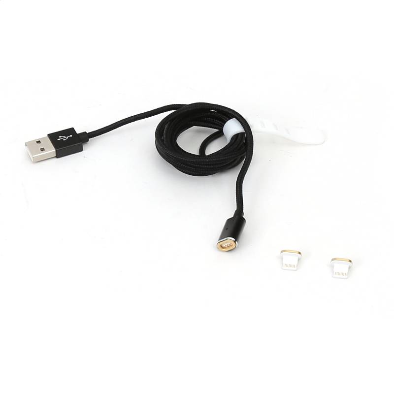 CABLE LIGHTNING (POUR IPHONE) USB PLATINET AVEC 2 EMBOUTS MAGNETIQUES 1,2M NOIR [43608]