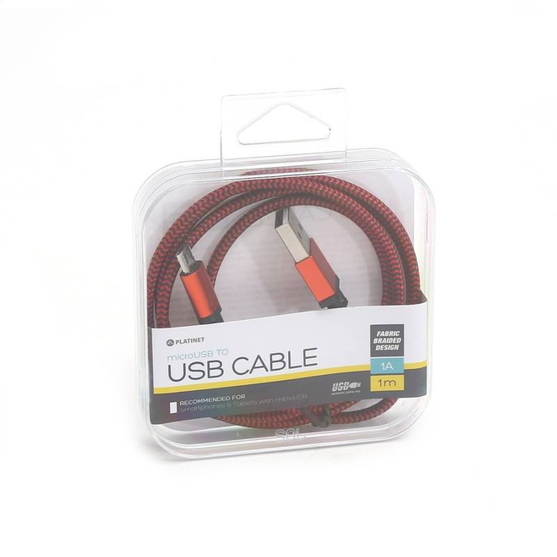 CABLE TRESSE MICRO USB VERS USB - 1M - ROUGE