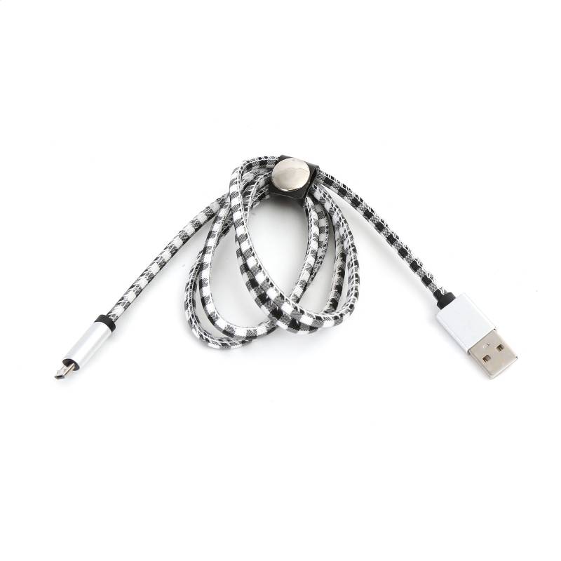 CABLE MICRO USB VERS USB A CARREAUX PLATINET CUIR 1M BLANC