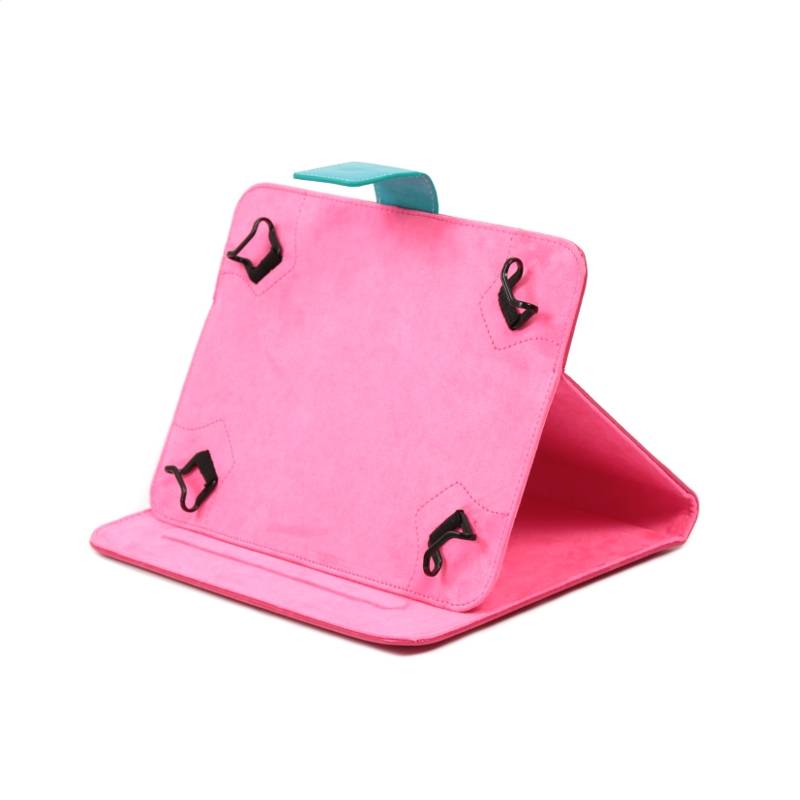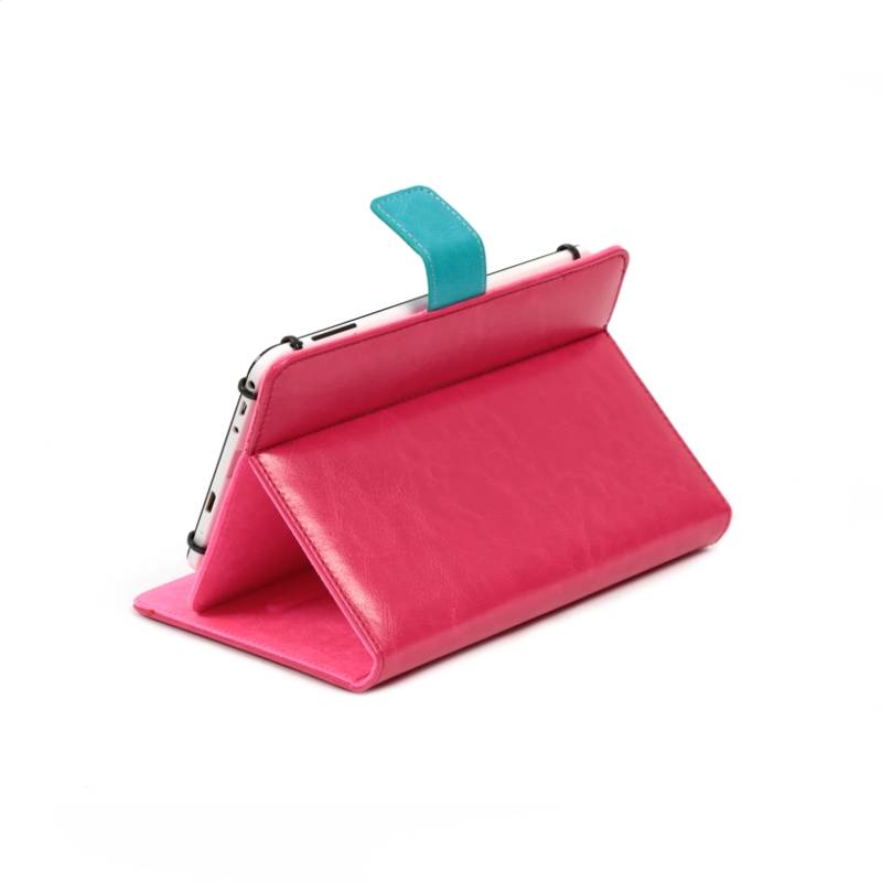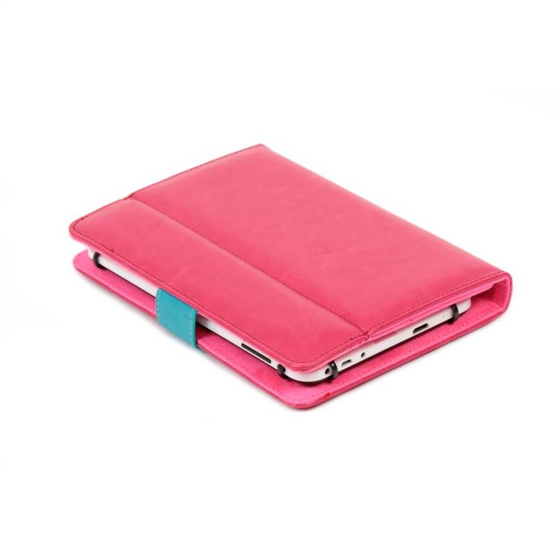 Un étui de tablette jusqu'a 7 "-7.85" (également adapté pour Ipad mini), en rose avec une bande bleue contrastée. Tres élégant et en meme temps solide. Tablette montée sur plastique, poignées noires bande élastique réglable. Le design original et expressif est associé a une excellente qualité de produit.