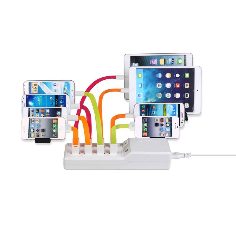 Chargeur mural universel avec 8 ports USB pour la recharge simultanée de plusieurs appareils.