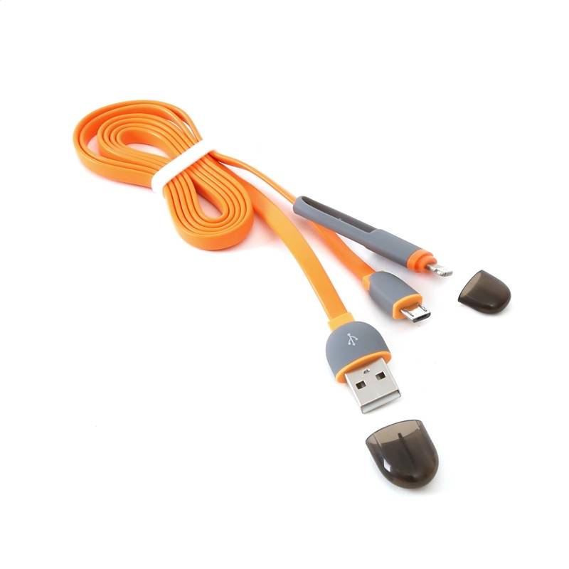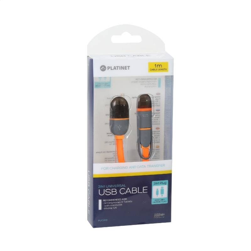 CABLE USB UNIVERSEL PLATINET 2 EN 1: MICRO USB & LIGHTNING - ORANGE