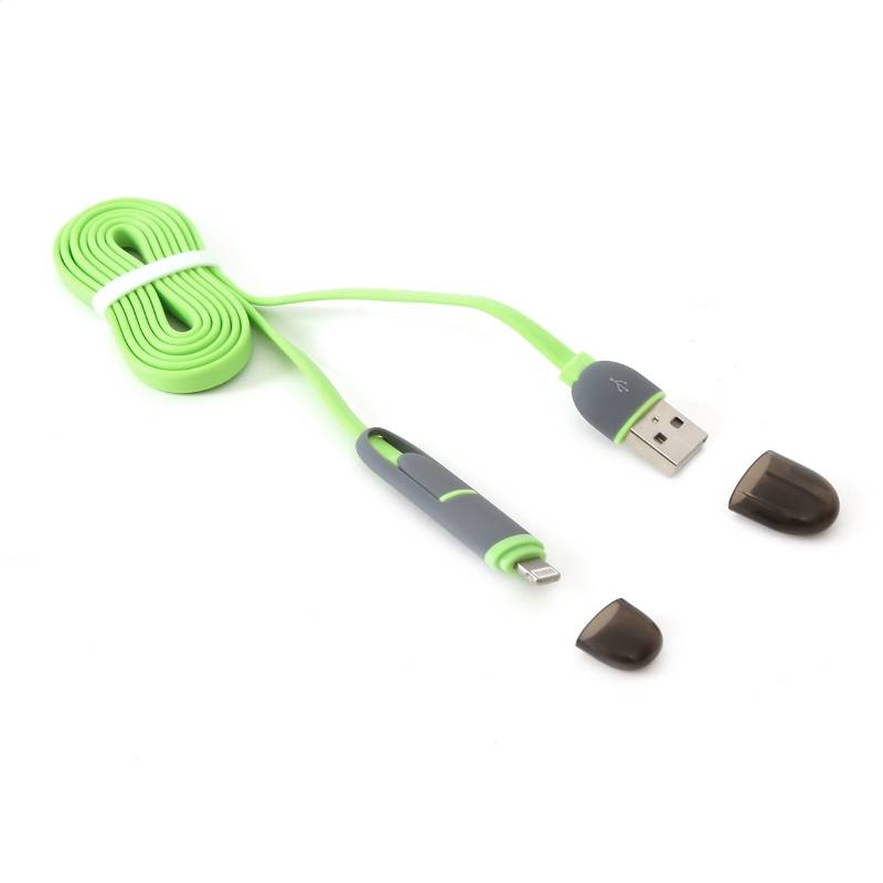 CABLE USB UNIVERSEL PLATINET 2 EN 1: MICRO USB & LIGHTNING VERT