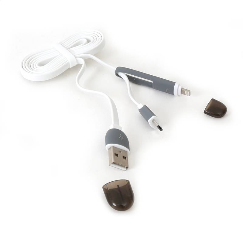 CABLE USB UNIVERSEL PLATINET 2 EN 1: MICRO USB & LIGHTNING - BLANC