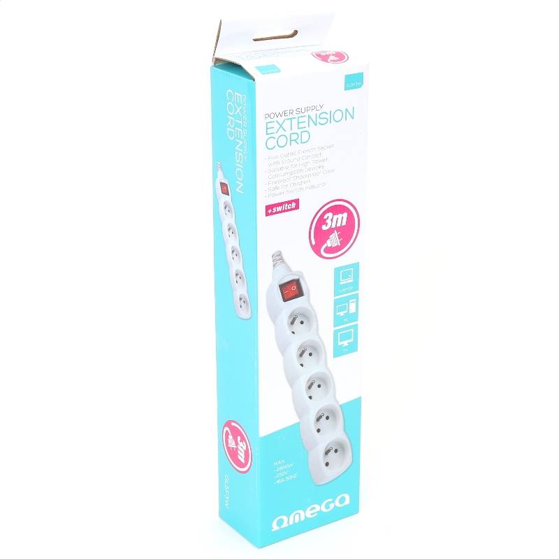 OMEGA LISTWA ZASILAJĄCA 3,0M 16A 5 SOCKET TYPE E FRENCH WHITE [41343]