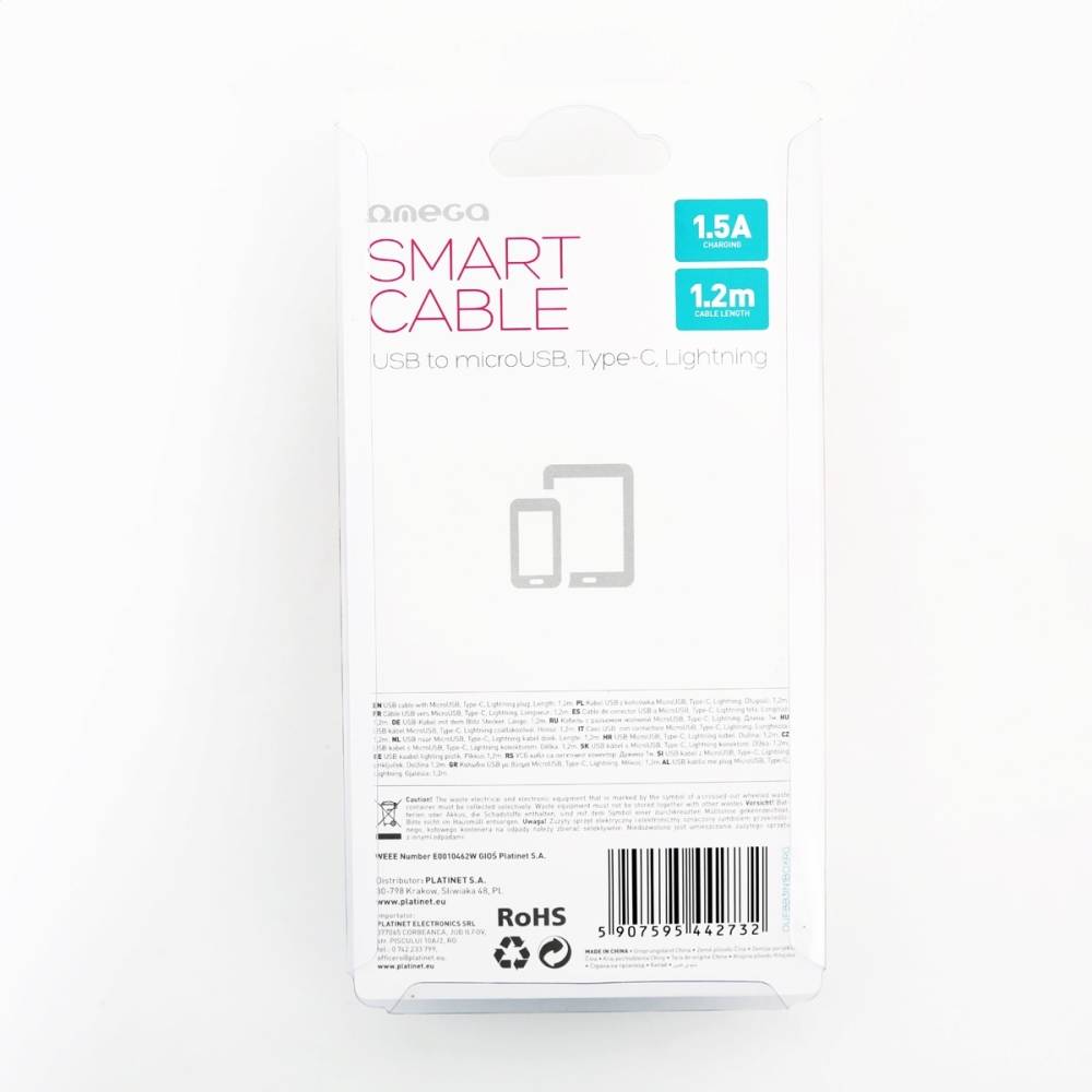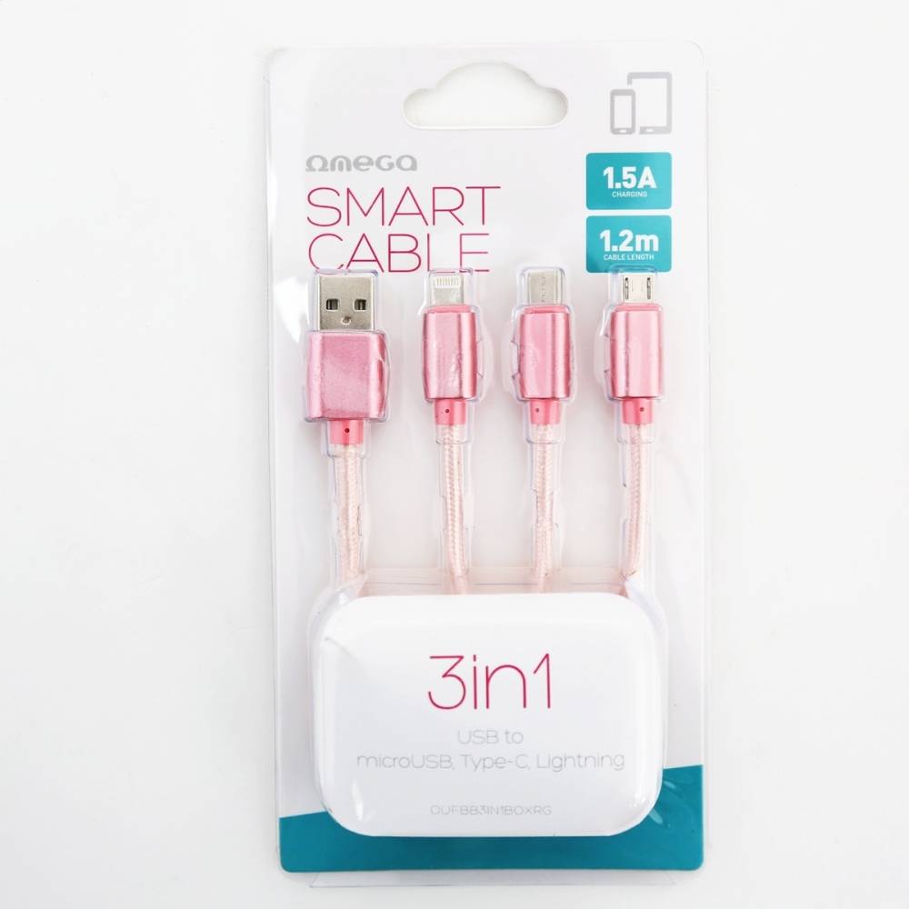 OMEGA CABLE USB 3 EN 1 MICRO USB TYPE C LIGHTNING 1.5A 1.2M ROSE GOLD 44273