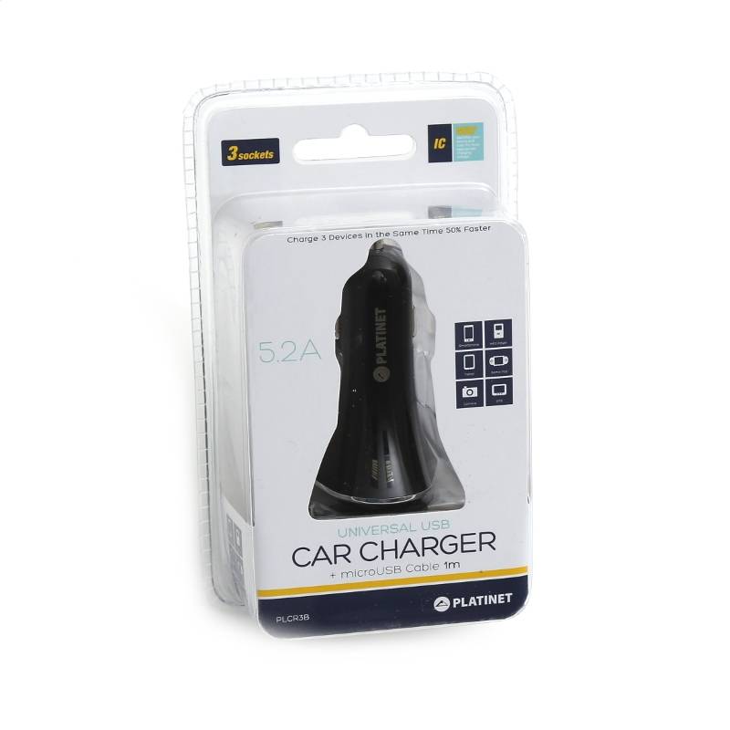 PLATINET CAR CHARGER 3xUSB 5,2A + microUSB cable 1m BLACK [43721]