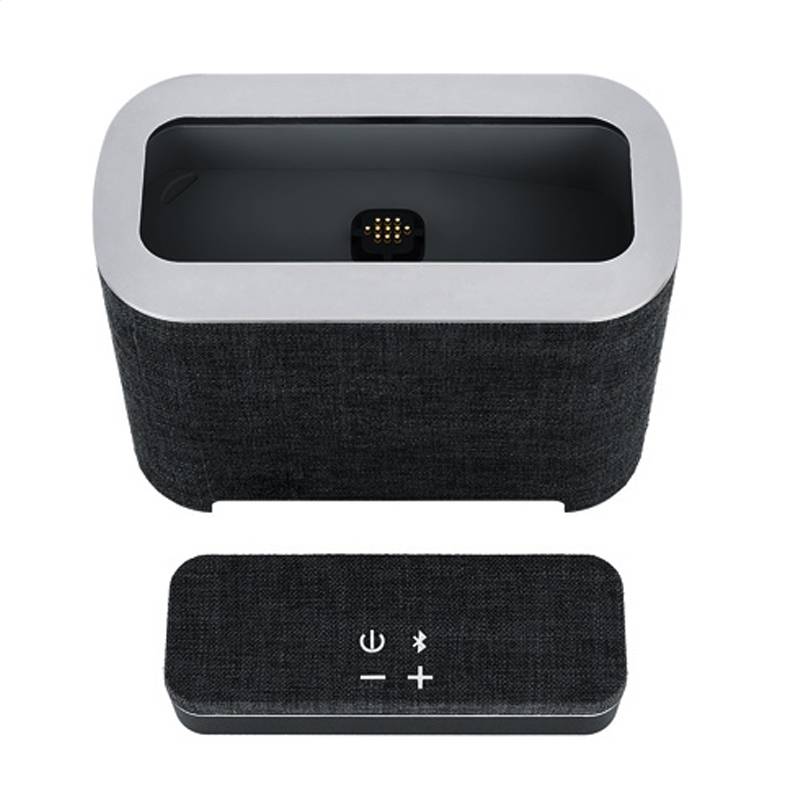 Stylowy głośnik Bluetooth ze stacją dokującą i subwooferem.