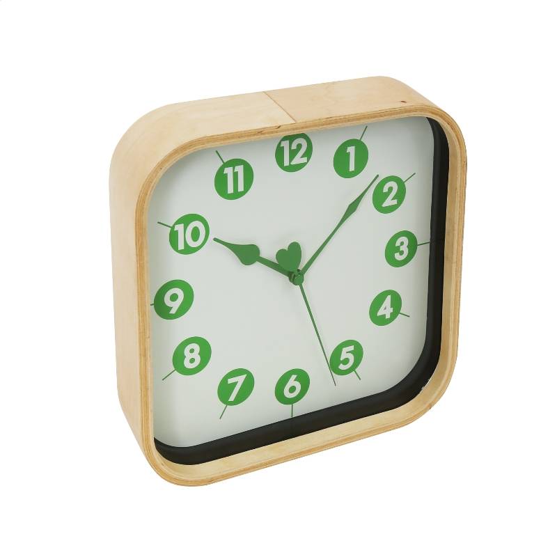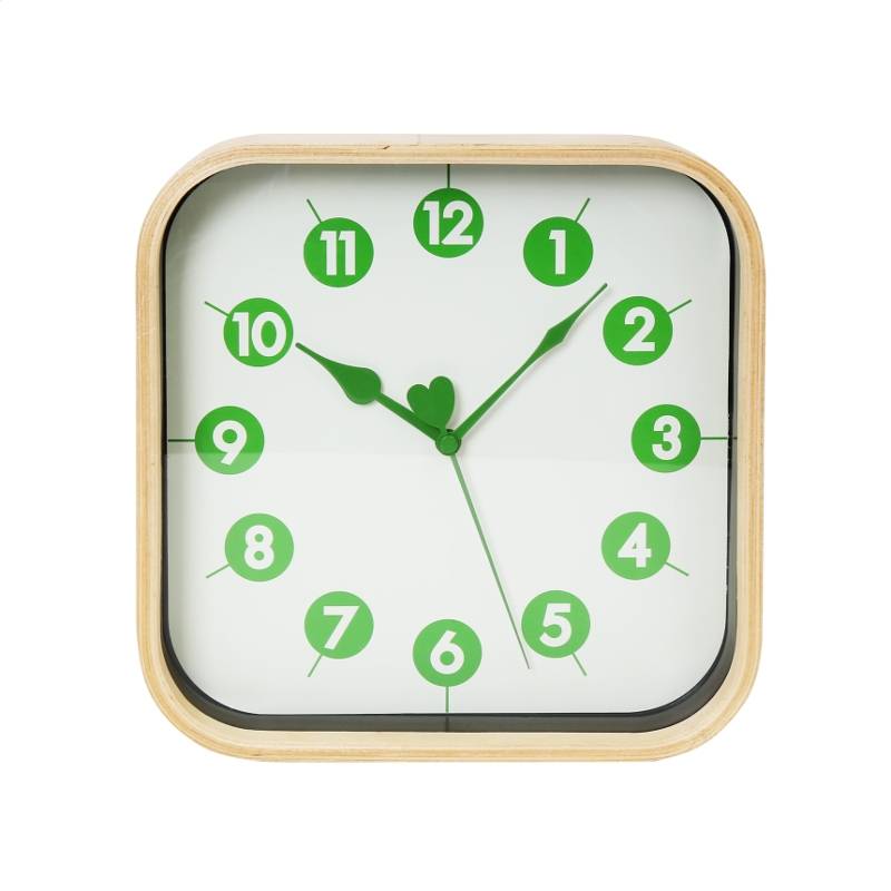 Platinet PZMGC MORNING is a stylish clock with a wooden case and a bright, transparent dial with green elements.
