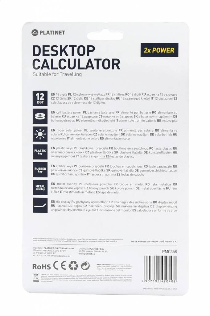 CALCULATRICE DE POCHE PLATINET PMC358 - affichage 12 chiffres
