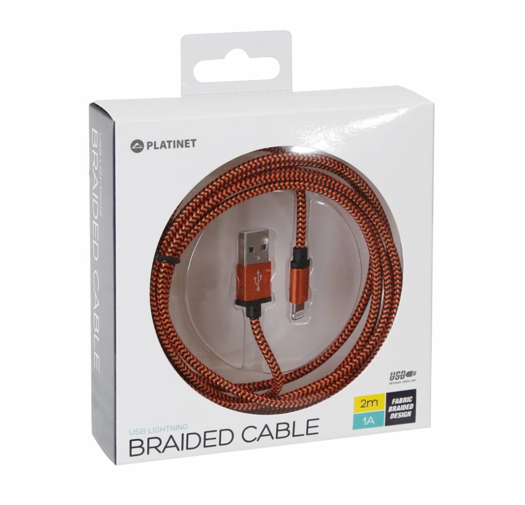 CABLE TRESSE USB LIGHTNING - 2M - ORANGE
